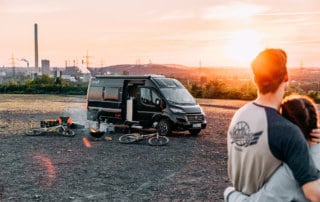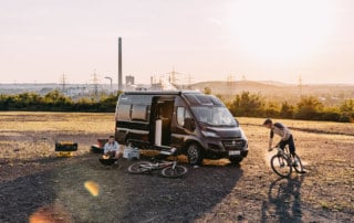 A campervan is a small bus or van with up to seven seats. It is particularly suitable for camping, as it is equipped with a built-in bed, a kitchenette or a bathroom.